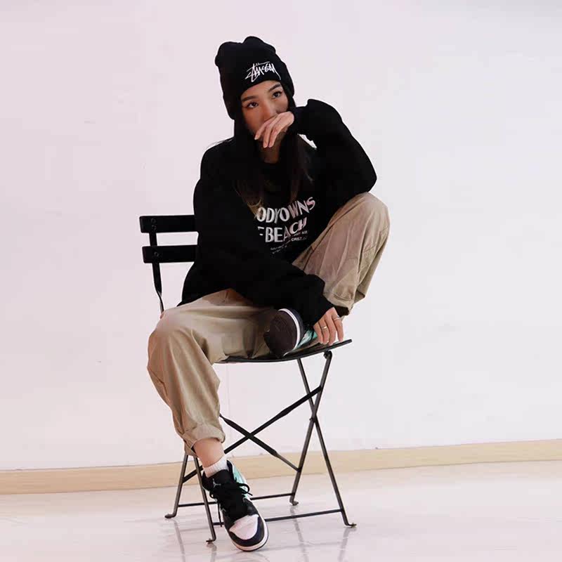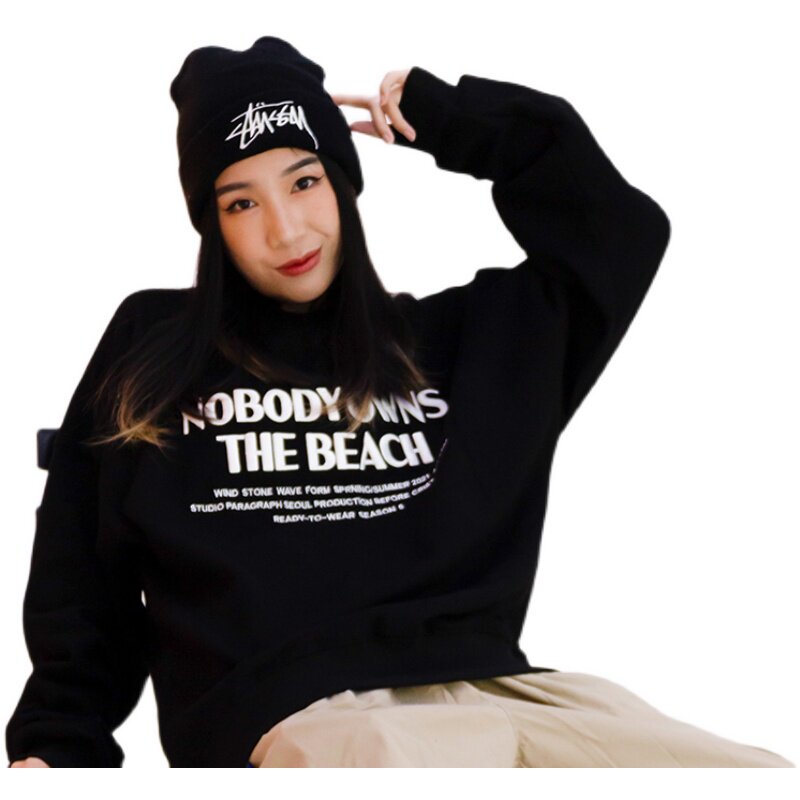 SHADOW STREET DANCE CIKA Identical Long Sleeves Head Pop Loose embroidered letter Street Dancing Round Collar Thick Cotton T