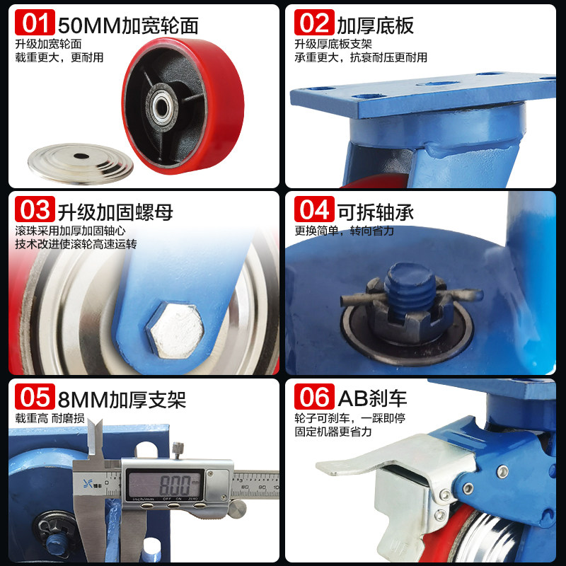 Overweight Wheel 4 inch 6 inch 6 inch Iron Core Polyurethane silence with brake caster equipment load wheel