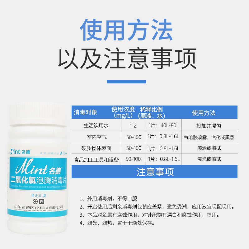 Mingde Chlorine Dioxide Effervescent Tablets Drinking Water Disinfection Air Swimming Pool Water Family Hospital Articles Sewage Disinfection Tablets