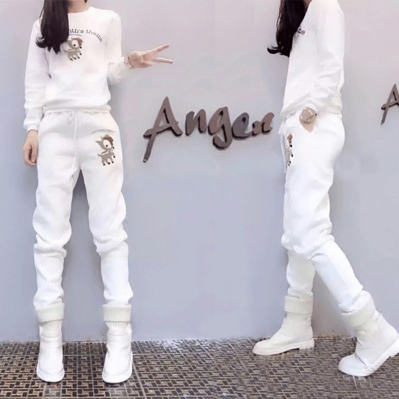 Sandro Blanca casual sports suit goddess sweater plus velvet thickened to reduce age and foreign style two-piece loose