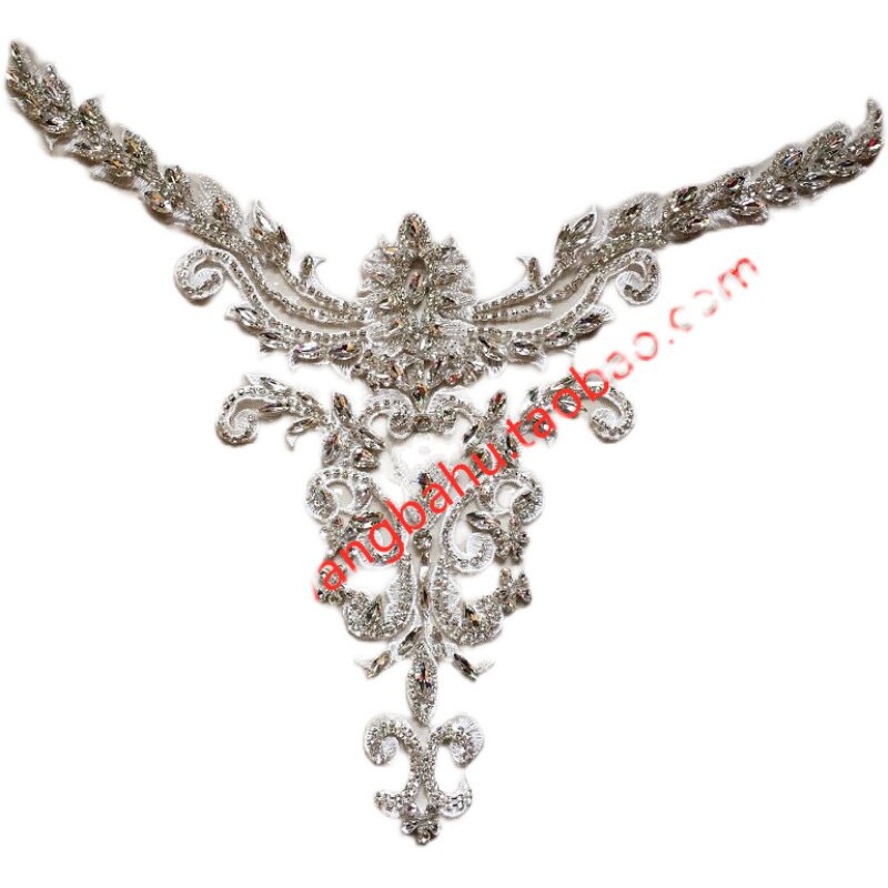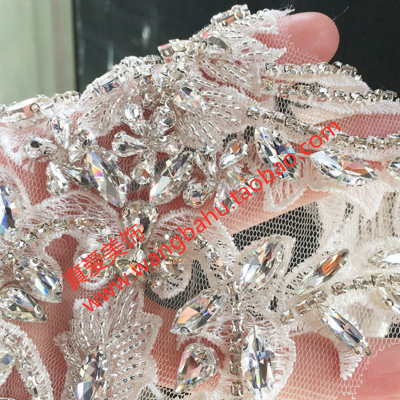 Rework embroidered nail pearl glass drill collar flower DIY wedding dress rehearsal for the neckline Lace Hat-in-the-neck