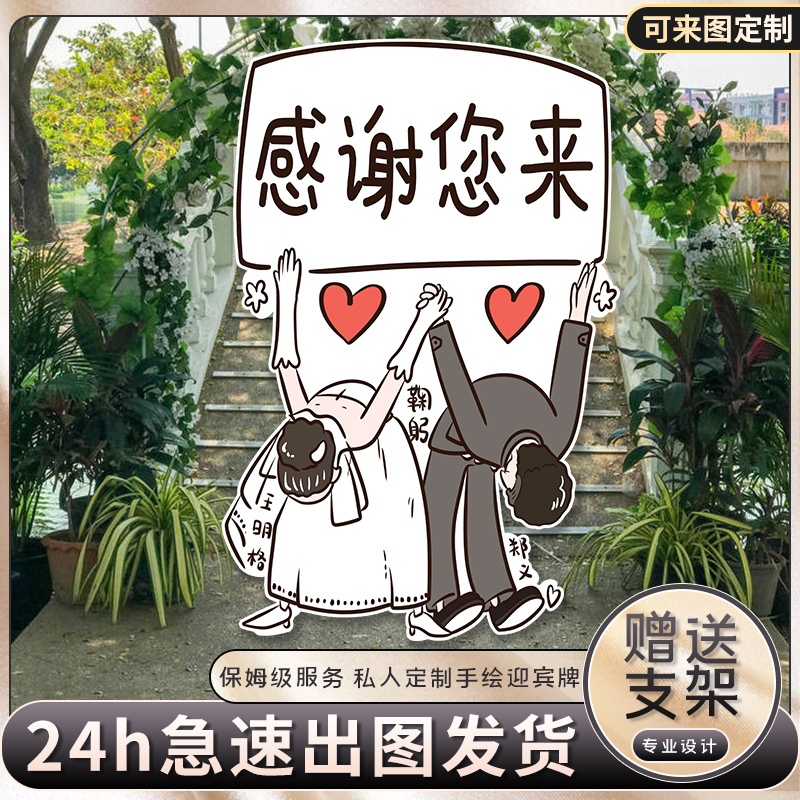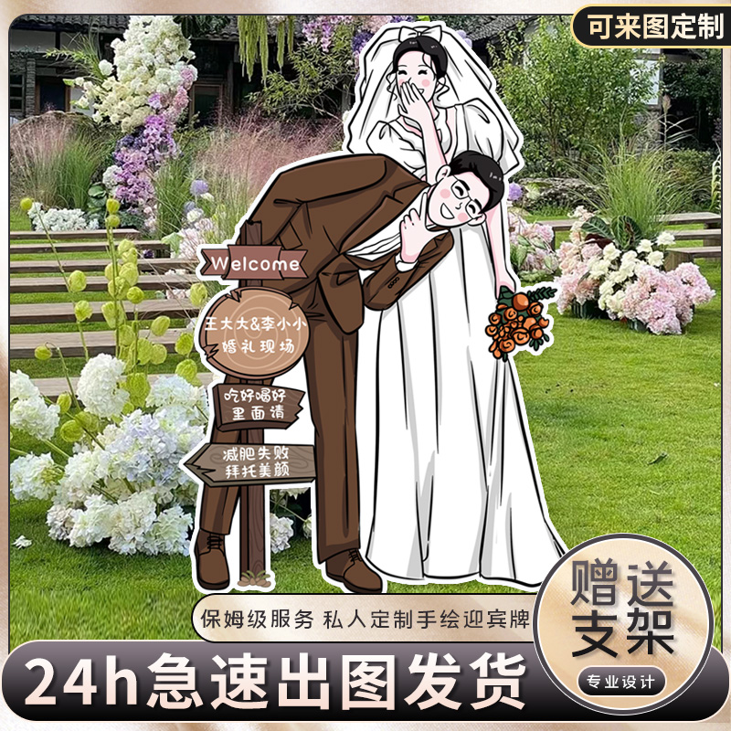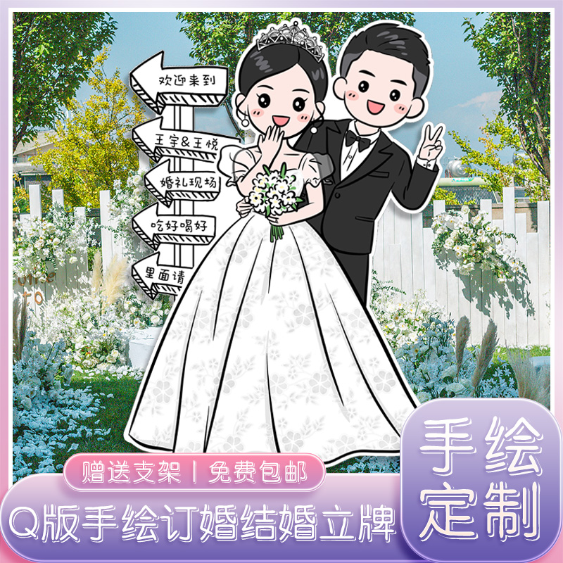 Married engagement wedding arrangement decorated cartoon manipulation cartoon hand-drawn bearer KT board custom guide sign