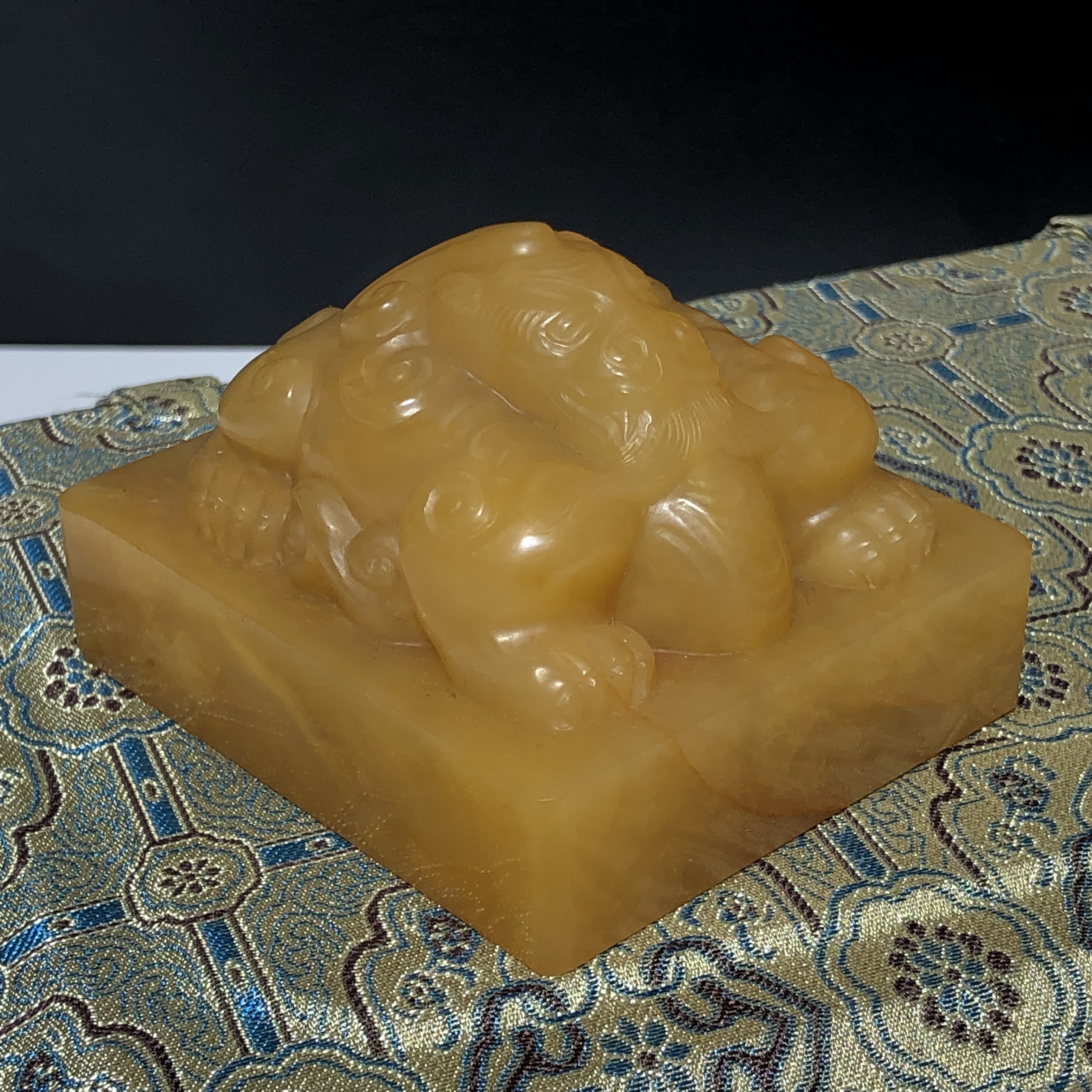 Boutique Shoushan Tian Yellowstone Seal Texture Condensed and permeable Wen Play Collection Chishi Artwork Gold Stone Seal Engraving Button Zhang