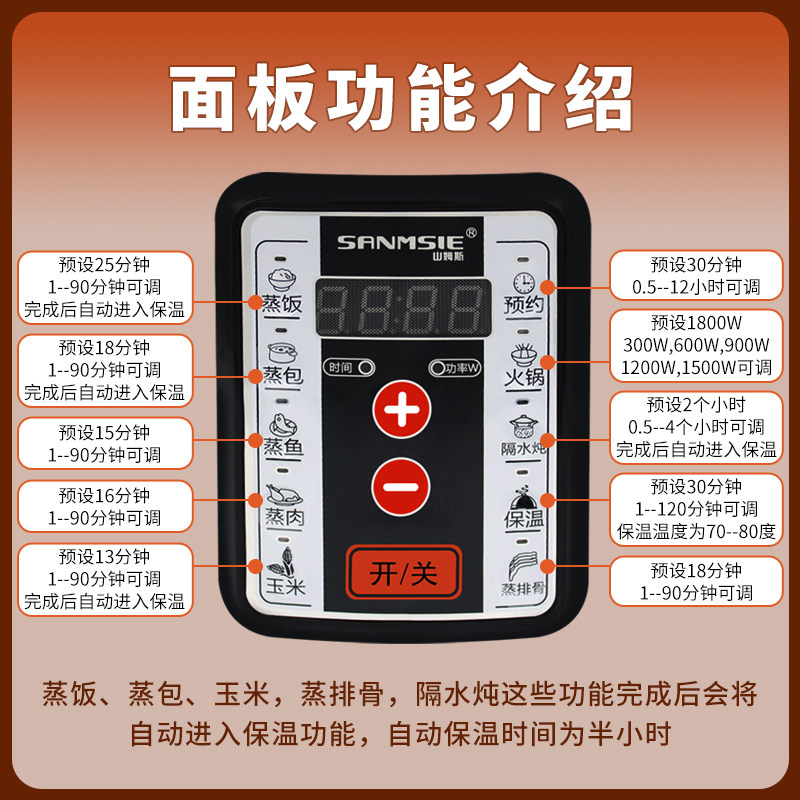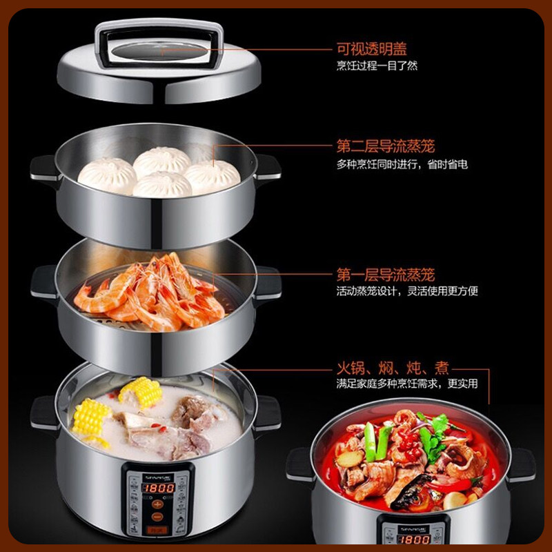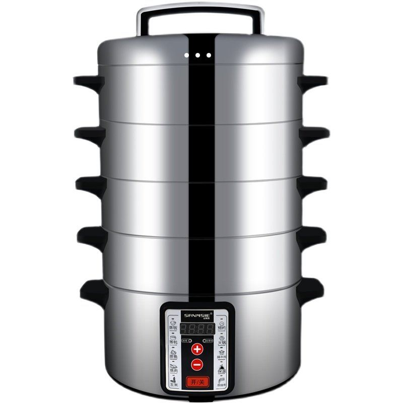 Sam Swire steamer Home Multi-functional large capacity plug-in electric steam cage multilayer stainless steel steam boiler timed 32cm