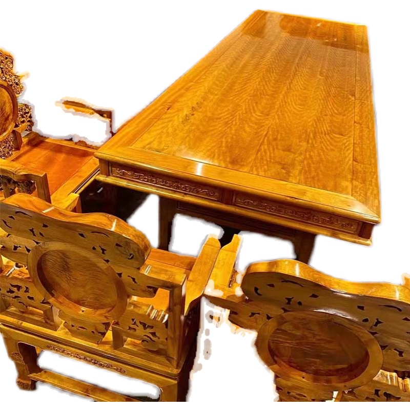 Golden Silk Nanmu Conference As A Small Leaf Zhen Nan Full Solid Wood Tenon And Mortise Work Log Woody Modern Large Plate Table Throne