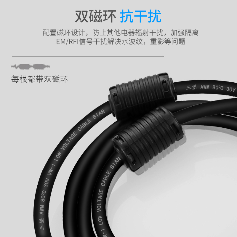 Sanbao double magnetic ring VGA line HD transmission line for pins for hole standard 3 6-core connection line 1 5 3 5 10 meters