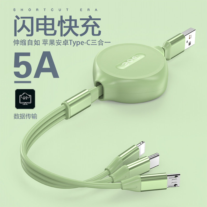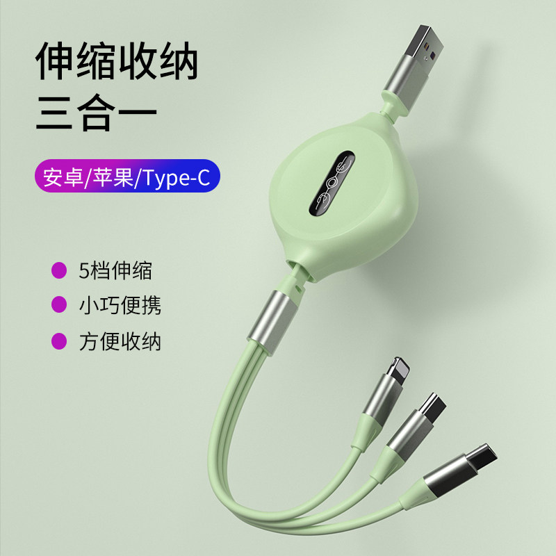 Charging Wire Three-in-one Data Line Fast Charger Usb One Drag Triple Flex On-board Android Dual Typec Quick Refill Triple Head 5A Suitable for Apple iPhone13 Huawei bulls versatile universal line