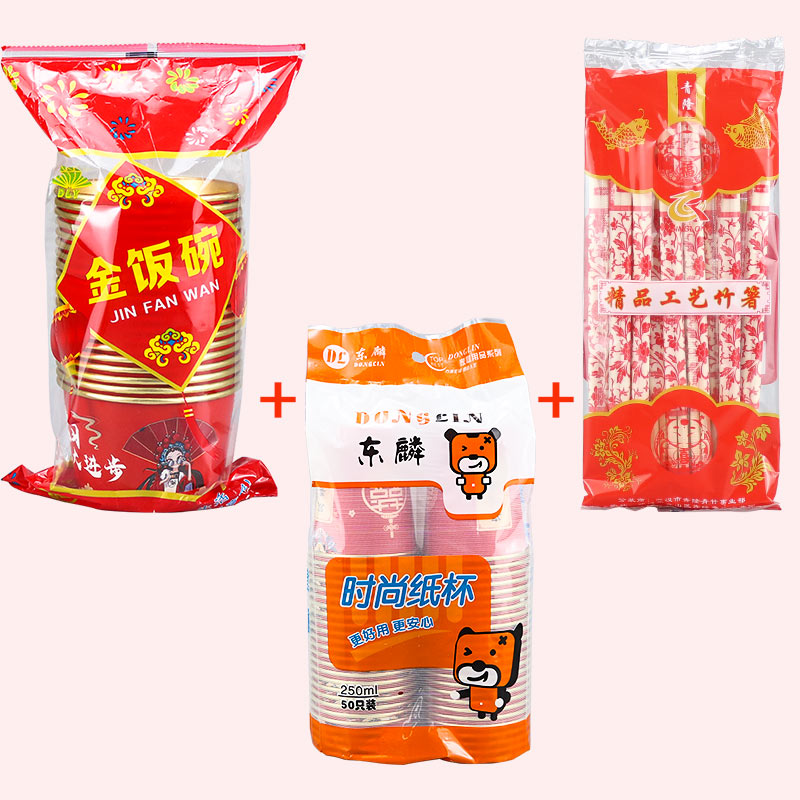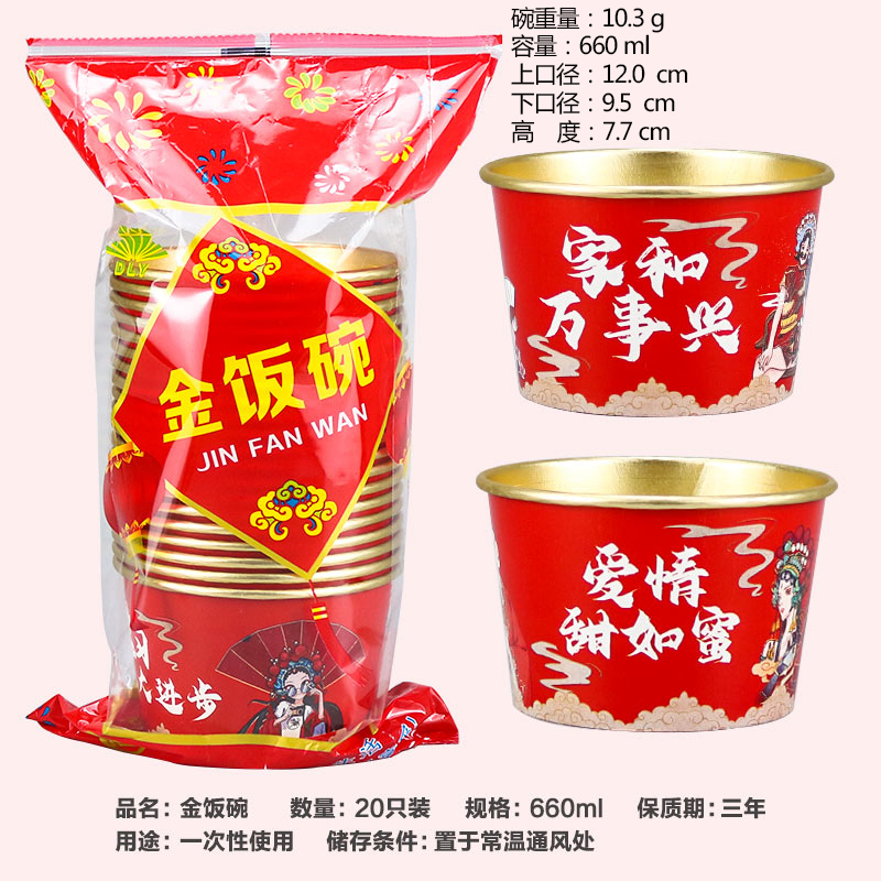 Thickened festive gold leaf paper bowl wedding banquet banquet tea toast red paper cup set festive dinner disposable paper bowl
