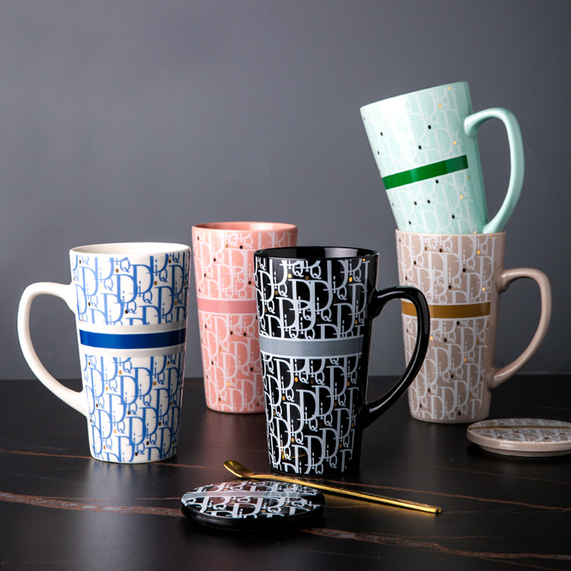 High-value American cup household ceramic mug with lid and spoon large-capacity water cup coffee cup tea cup