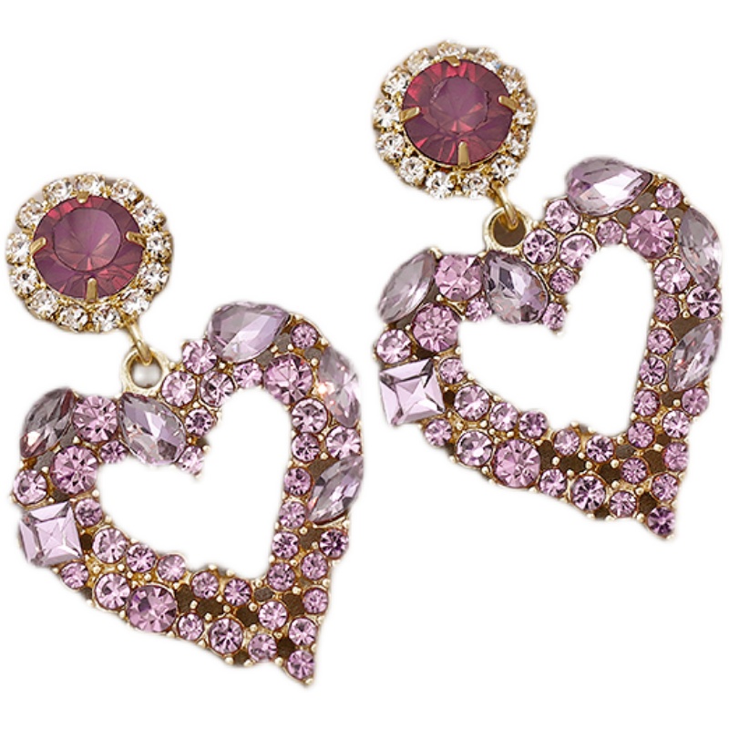 Purple peach heart ~ heart to heart ~ light luxury earrings simple fashion ear needles trendy temperament design full diamond earrings