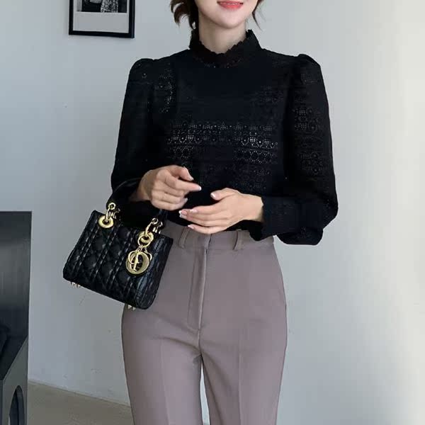 Plush Lace Semi-High Collar Shirt Hooded Sweatshirt 100 Hitch Commute Korea Autumn Winter New