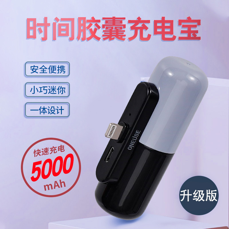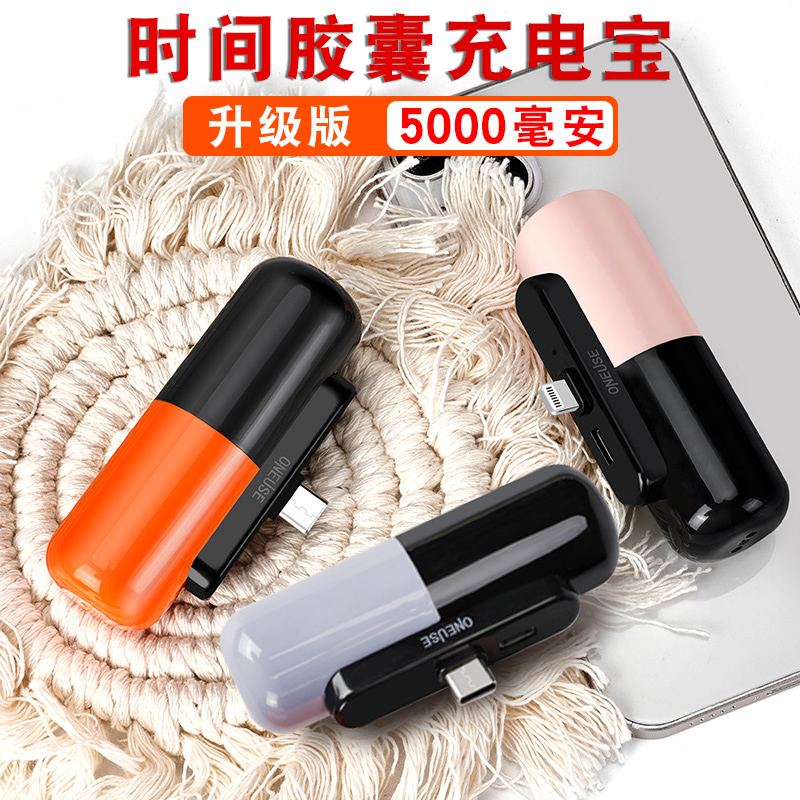 Capsule mobile charging wireless ultra-thin small portable 5000 mAh pocket emergency filling pill suitable for apple type-c Android oppo Xiaomi vivo large capacity with own line action power supply