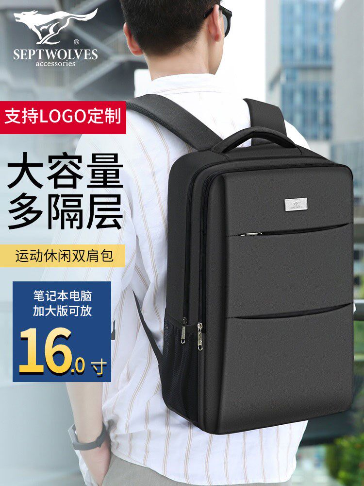 Seven Wolves Package Men Business Double Shoulder Pack 2021 New Men's Computer Travel Package Customized Capacity