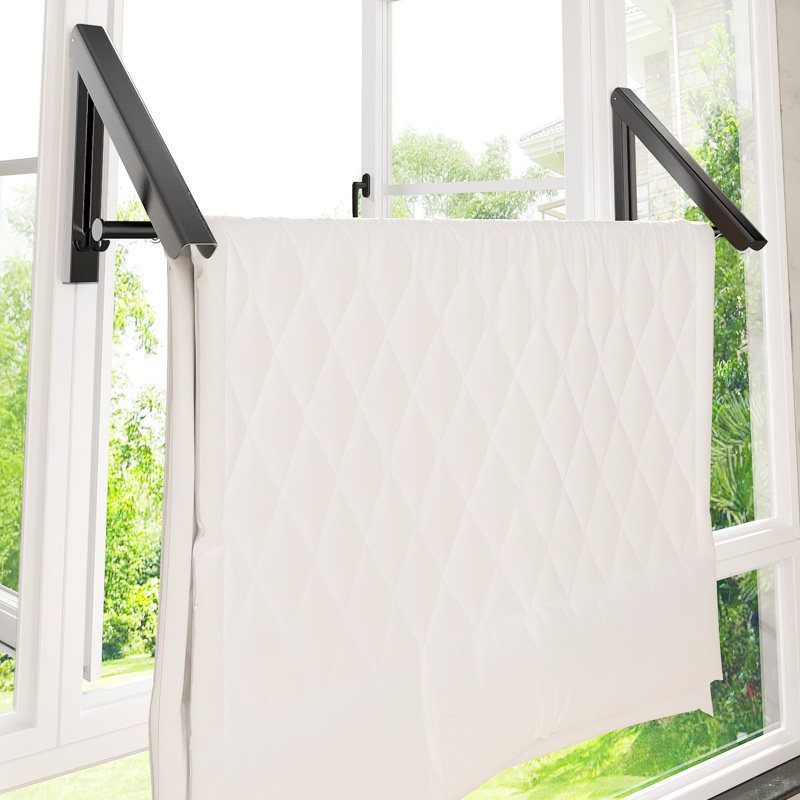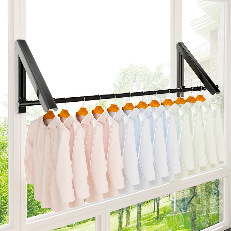 Invisible drying rack without punching balcony household folding stretch drying rod thickening window drying outdoor sun dew