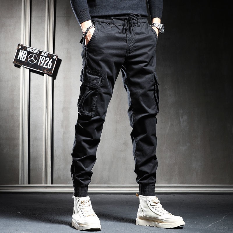 2021 overalls sports pants men's loose toe tide brand boys padded casual pants autumn and winter plus velvet pants