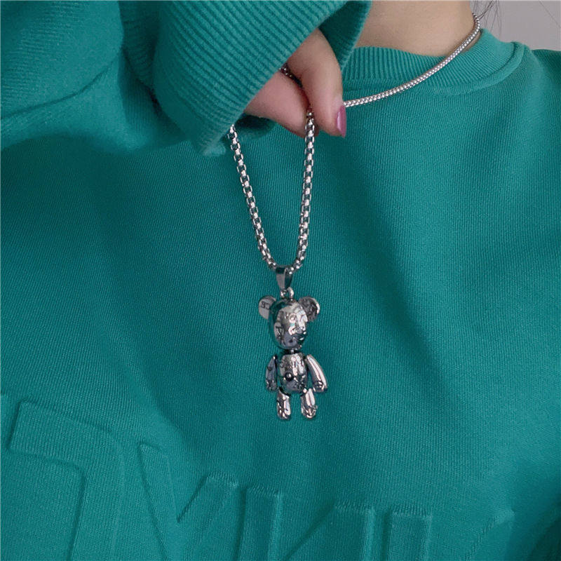 Pure Silver Violence Small Bear Necklace Man Boomer Hip Hop Punk Extremities Movable small crowdgrowing version of Fur Coat Necklace Pendant