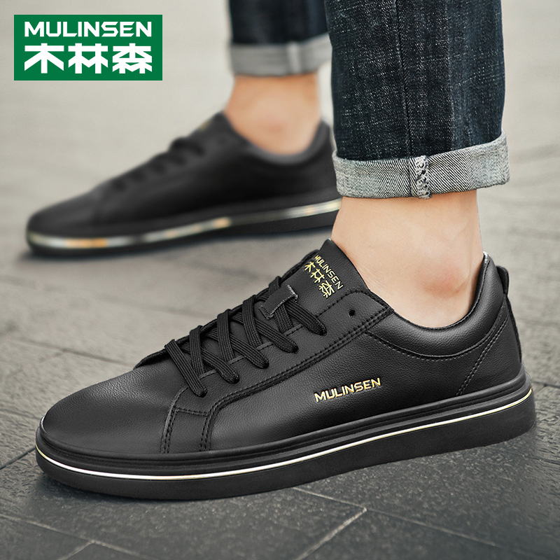 Wood Linson Genuine Leather Men Casual Board Shoes Sports Trends Inglées 100 Hitchhiking Teenagers Full Black Leather Shoes Spring