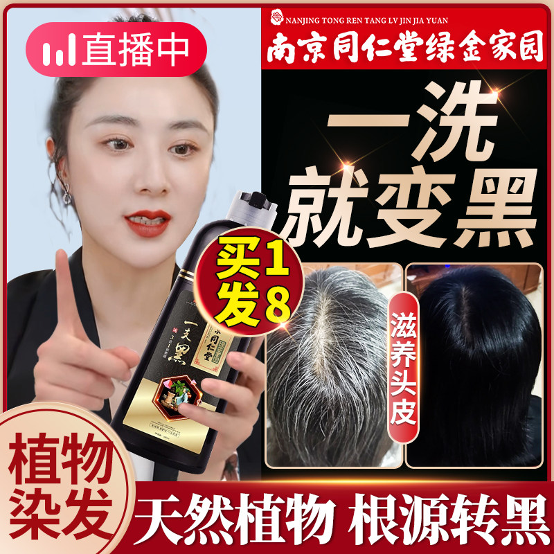 Tongrentang hair dye pure plant one wash black natural black non-stick scalp natural non-irritating flagship store