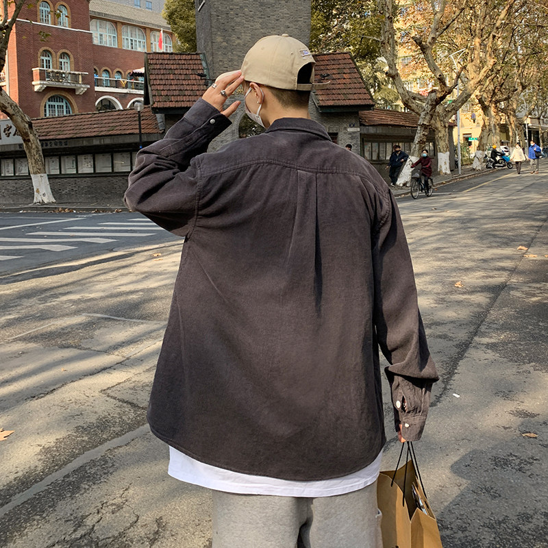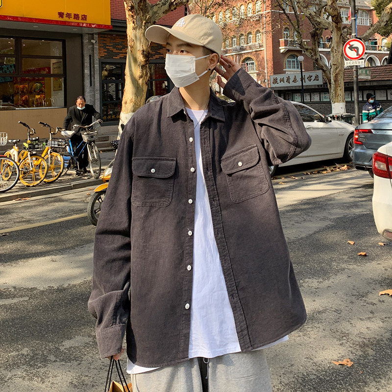 Tide lamp corvette long sleeve shirt coat male spring autumn retro-loose hundred and shirt double pocket