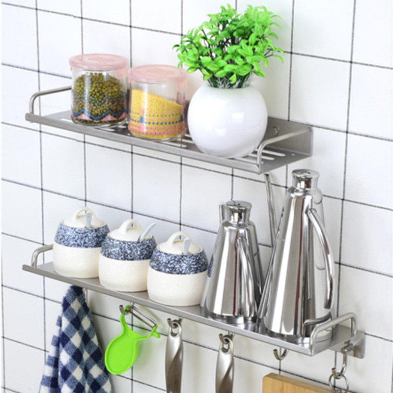 304 stainless steel kitchen seasoning rack wall-mounted free-to-punch monolayer home condiment material contained shelf-Taobao