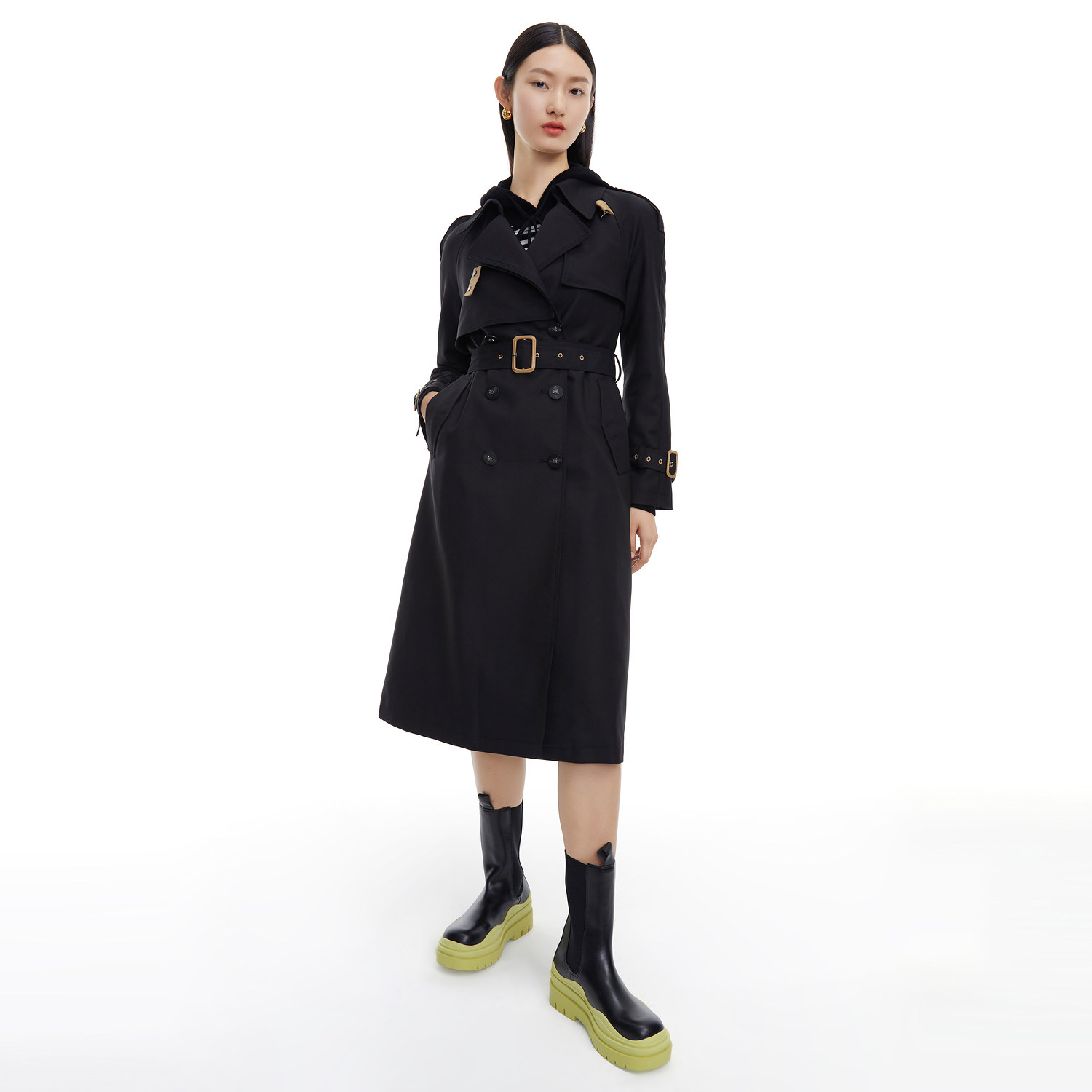 JUZUI Jiu 2022 Spring New Pure Color Cashew's Temperament Long Version of the Able Urban Woman Windcoat Jacket
