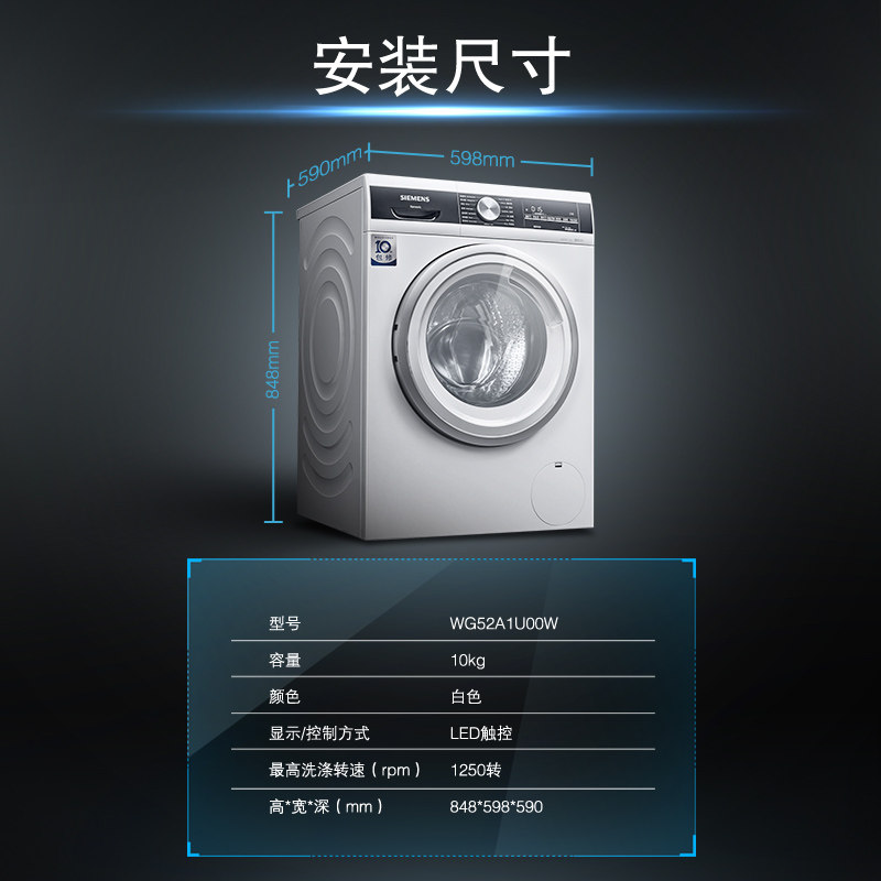 Siemens Official 10 kg KG Variable Frequency Home Bacteria Energy Saving Fully Automatic Drum Washing Machine WG52A1U00W