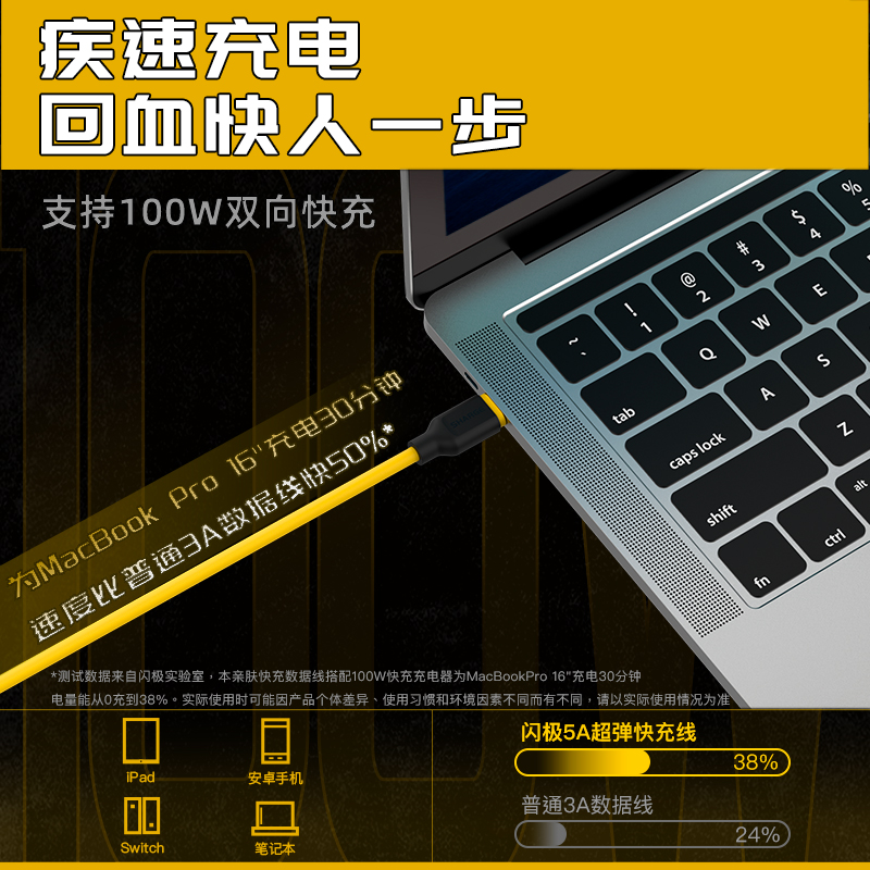 SHARGE Flashpole 5A Fast charging 100w Huawei laptop fast charger type-c data line p20p30
