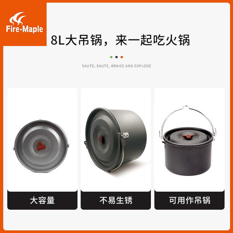 Fire Maple FMC-215 Outdoor Camping Hanging Pot 8L Large Capacity Team Picnic Deep Mouth Camping Pot Bearing 10KG