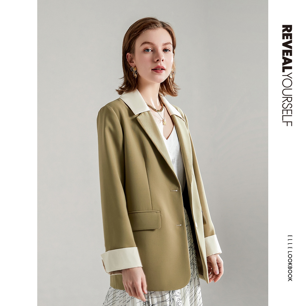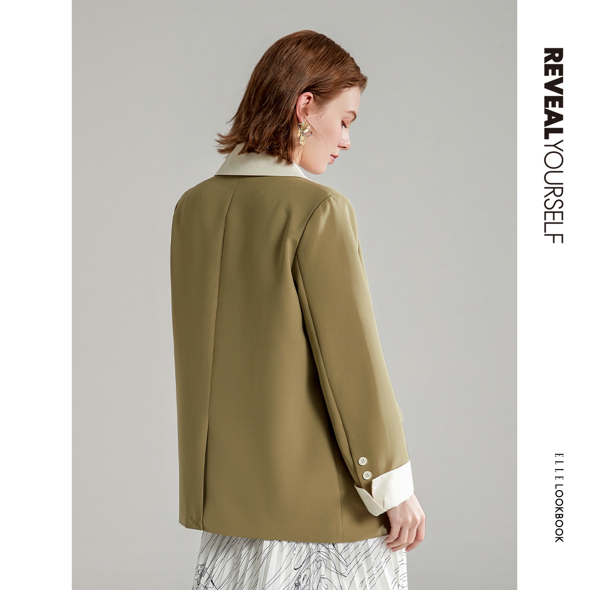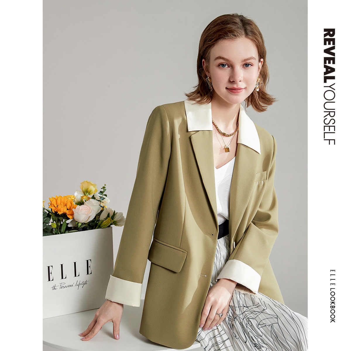 ELLE retro card with its color suit jacket woman 2022 spring new work clothes temperament short collection waist little west suit