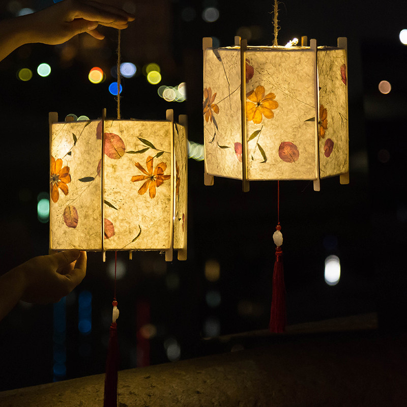 2022 Mid-Autumn Lantern Creative Spring Festival Children's Handmade DIY Lantern Retro Style Hanfu Flower Paper Portable Lantern