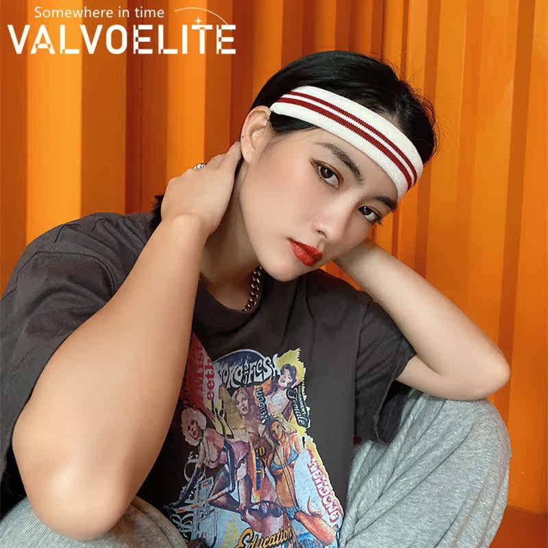 VALVOELITE Sport hair with women Sweat Sweat Personality Ins Tide Head Accessories Striped Knit Elastic Yoga Beam Hair