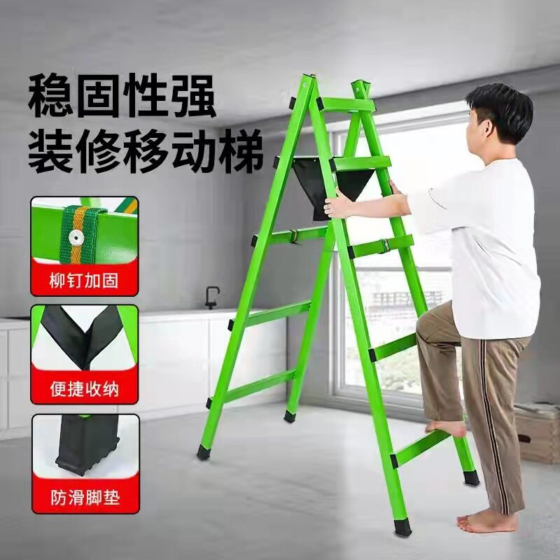 Carbon steel walkable herringbone ladder carpentry walking carbon steel thickened and widened welding engineering ladder home decoration folding ladder - Taobao