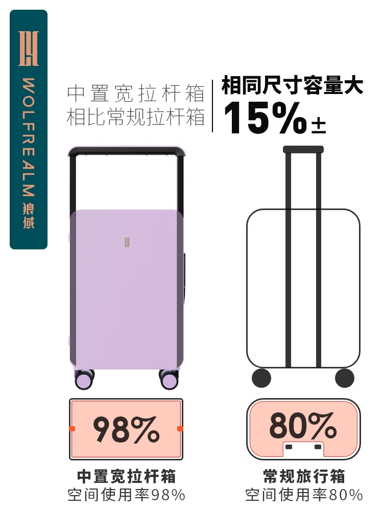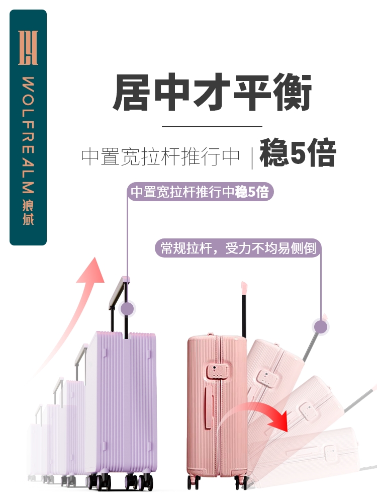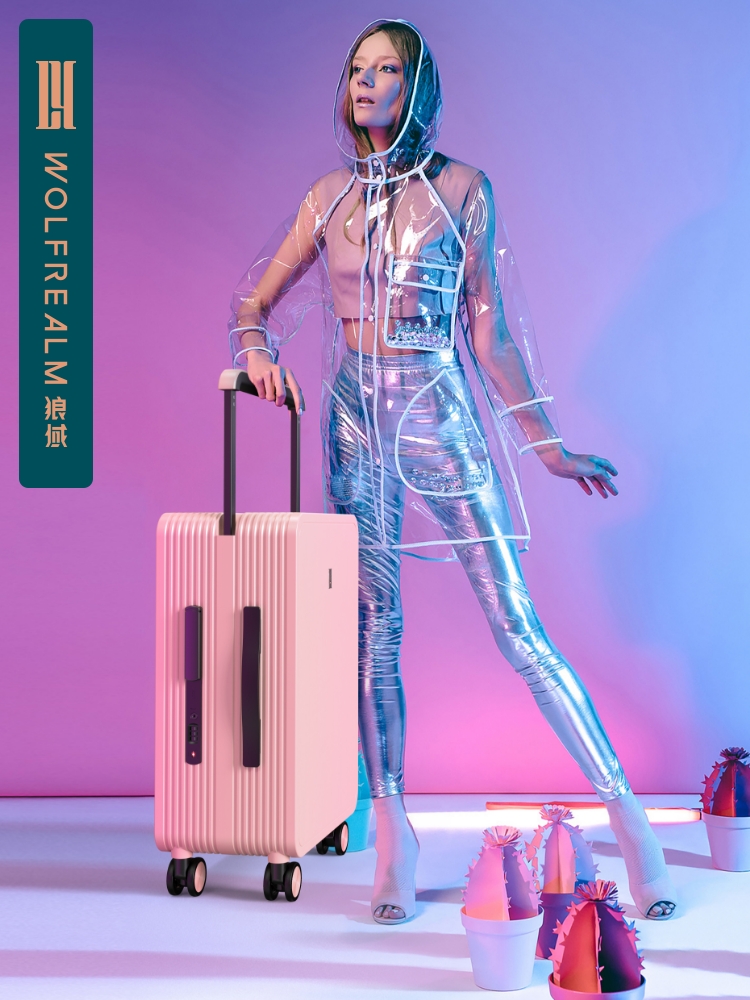 Wolf domain high color luggage woman Macarron color 20 inch wide - pull rod suitcase silent boarding box