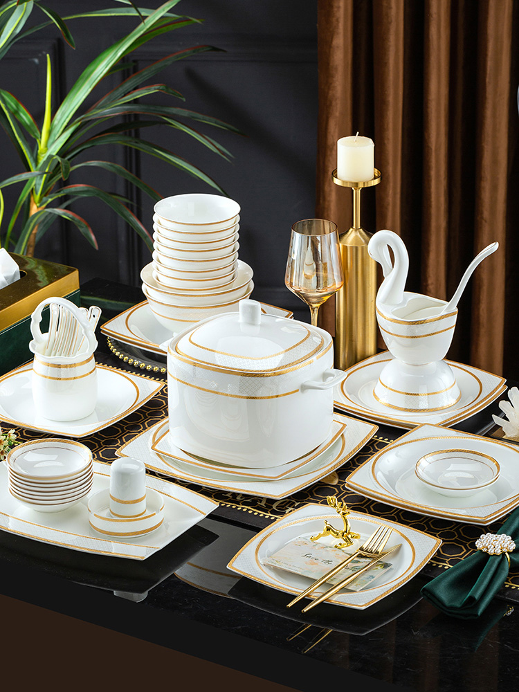 Barondy light lavish style minimalist bowls tray chopstick Jingdezhen Bone China Porcelain Cutlery Cutlery Cutlery for a Courtesy Bowl home suit