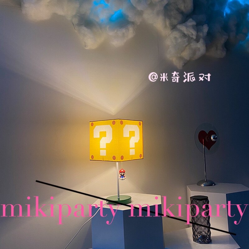 Mickey Han ins Little Red Book Creative Mario Decorative Table Lamp Super Mario Question Mark Bedroom Cube Bedside Lamp