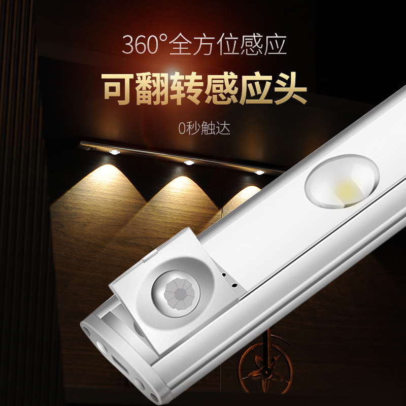 Net red ripple cat eye charging human body induction night light wireless long overall cabinet bottom light wine cabinet laminate light strip