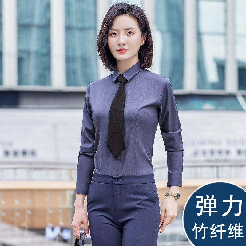Stretch professional shirt women's long-sleeved men's and women's work clothes iron-free tooling temperament formal dress custom embroidered LOGO shirt size