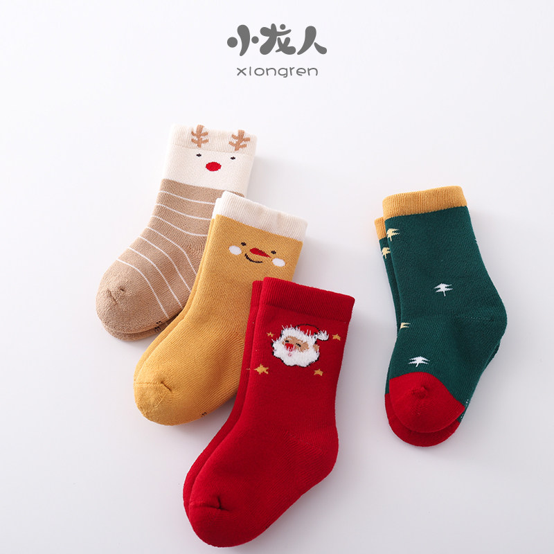 Dragon Man's Christmas Socks Children Autumn Winter Thickened Woolen Socks Socks Baby Pure Cotton Midbarrel Socks Cartoon Spineless Baby Socks