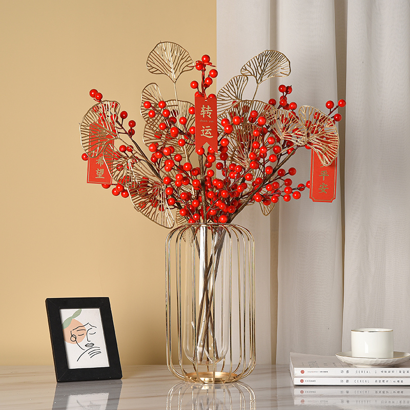 Fragrant Red Fruits Hair Chaeze Fruits Winter Green Simulation Flowers Furnishing Chinese New Year Holiday Flowers Flower Arrangement Living Room Table Drying Flower Pendulum Pieces
