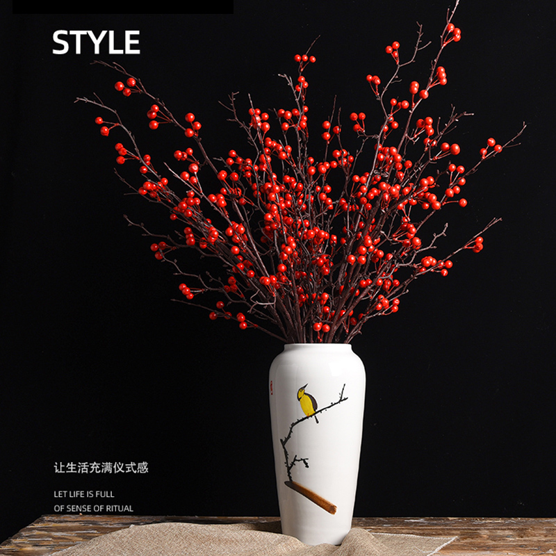 Army green gold plated ceramic large number vase -24 * 6 5-ink green 4 fork winter green fruits * 4 gold fan * 1 ceramic large number vase -24 * 6 5-white 4 fork winter green