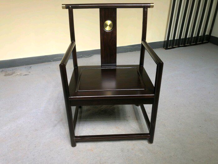 180*80*10 ebony large plate with a pair of I-shaped brackets, a copper-inlaid official hat chair, and four copper-inlaid guest chairs
