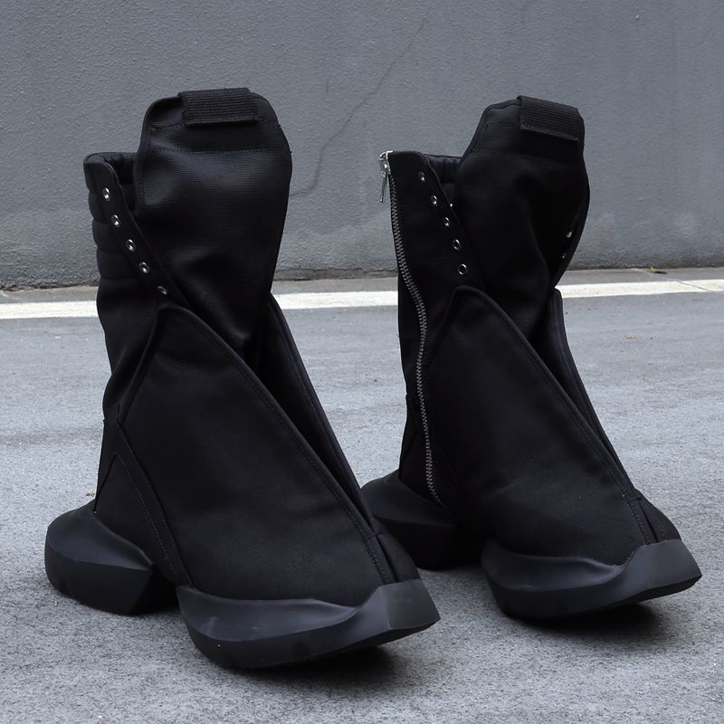 RO Horseshoe Walking Show Great Aircraft Shoes Fashion Europe Station New High Drum Thick Boots Heightened Pine Pastry Korean version Dark Black