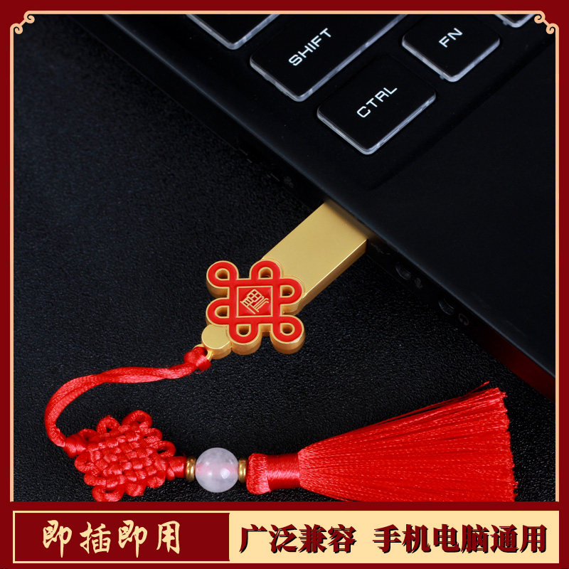 Chinese Knot U Disk 64g Custom Logo Lettering Genuine Set Antique U Disk Personality Creative High Speed Mobile Computer Dual-use Retro ∪ Disk Batch Order Gift Gift Box Company New Year Conference Exhibition