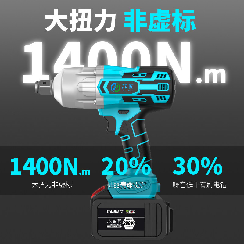 Su Jiang high torque electric screwdriver 1400n auto repair rechargeable pneumatic wrench brushless impact wrench heavy-duty lithium mobile phone battery hand