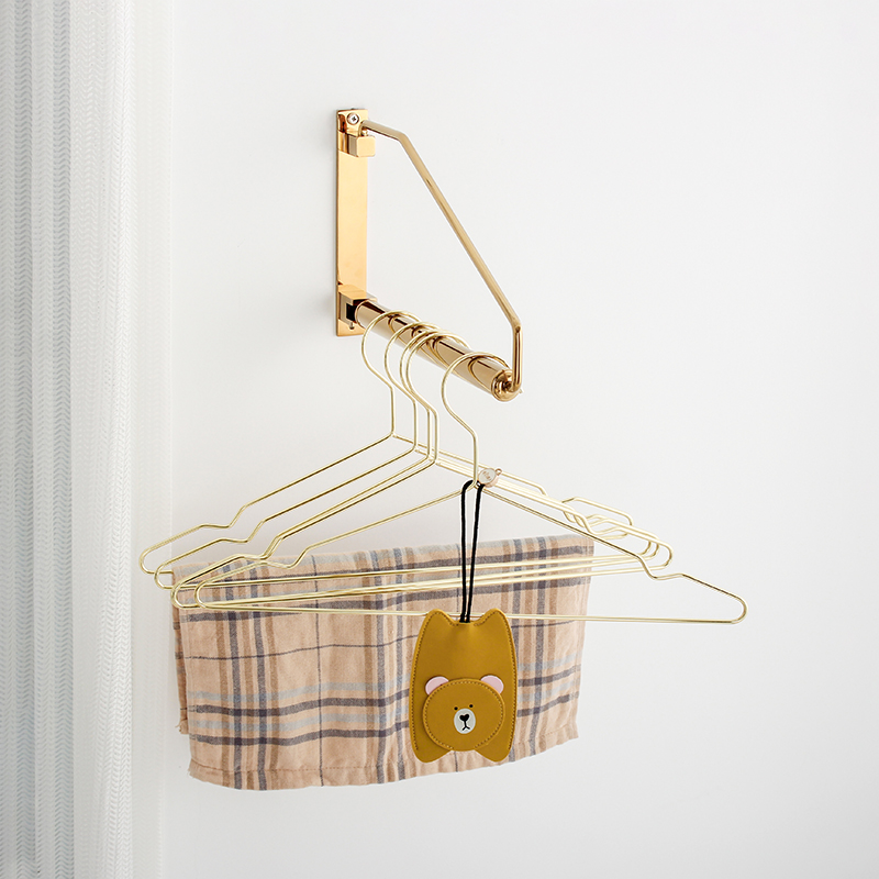 Household foldable brass hanger small household balcony wall hanging cloakroom drying clothes towel rotation free punching
