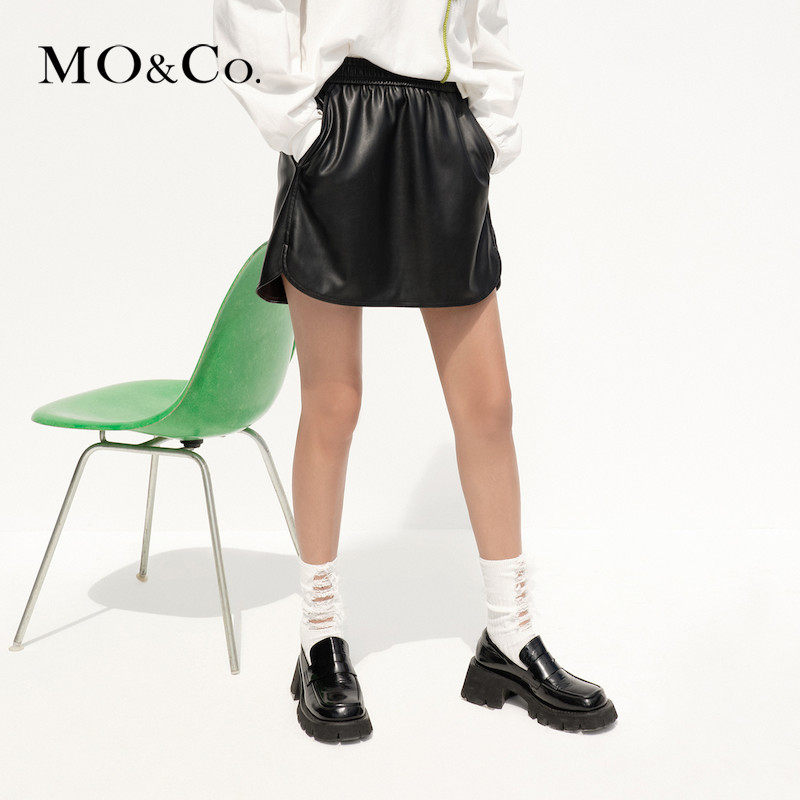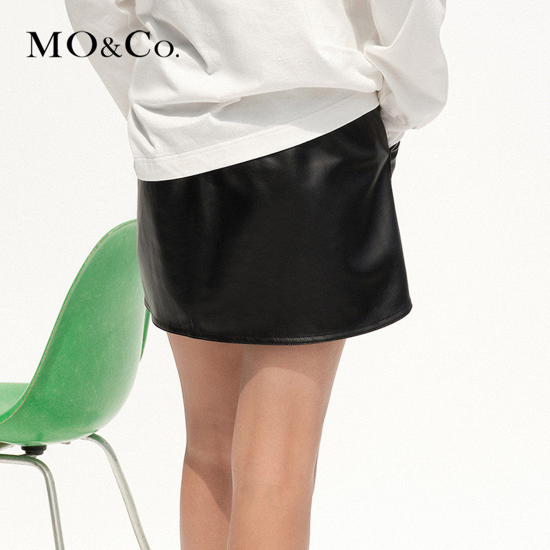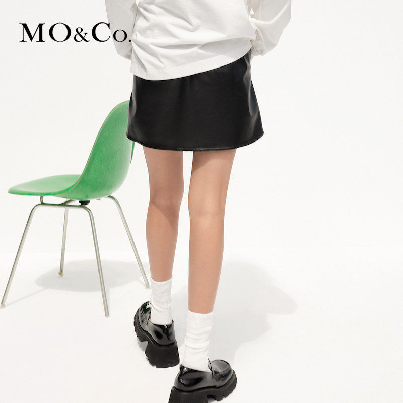 MOCO2022 Spring Elastic High Waist Imitation Leather Skirt Short Skirt MBB1SKT026
