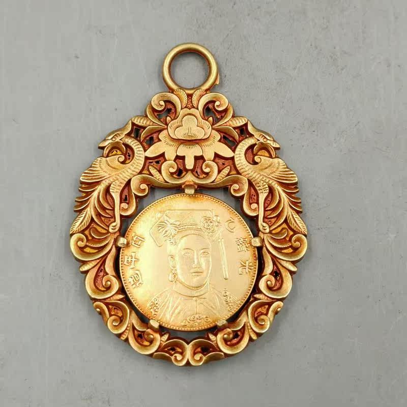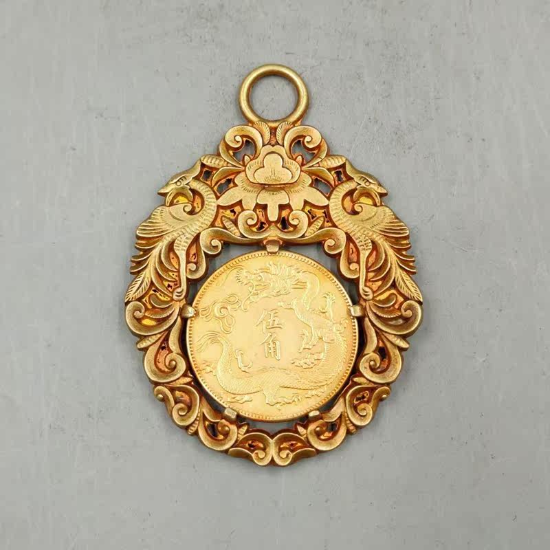 Antique - played miscellaneous double - fengyin piece gold coin copper - gilded gold decoration home process decoration