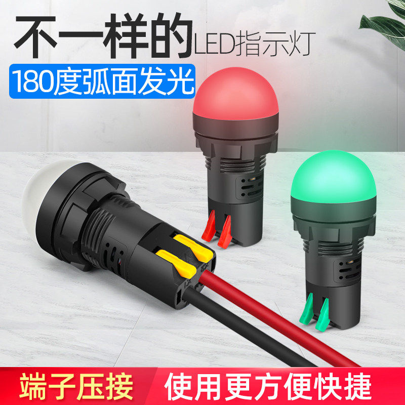 Power work signal lamp spherical LED indicator 180 degrees arc surface red green yellow blue white 12 24220 V