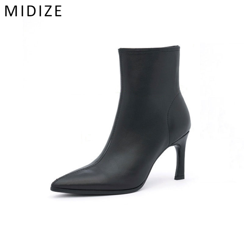 MIDIZE sheepskin short boots shoes women's 2022 new winter temperament all-match stiletto high heels leather boots