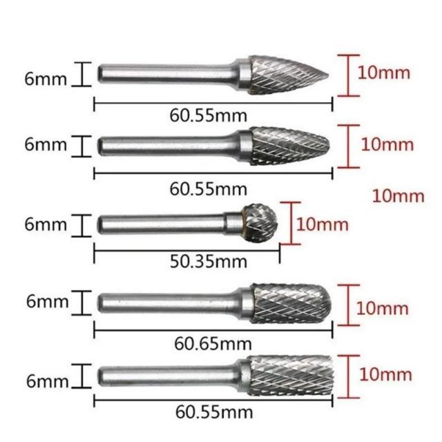 6mm Shank Tungsten Carbide Rotary Point Burrs Double Cut Sol